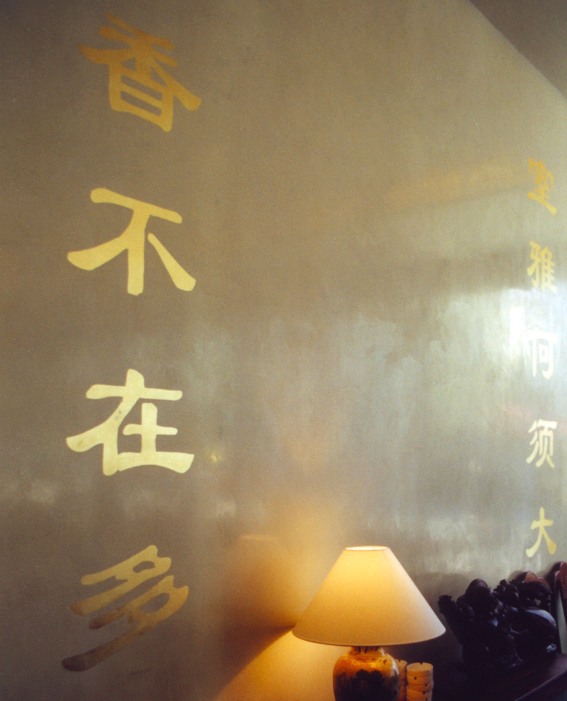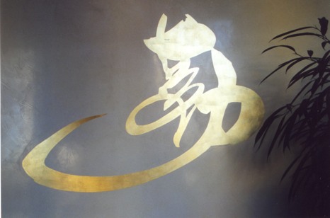Spachteltechnik mit Schriftzeichen in Blattgold