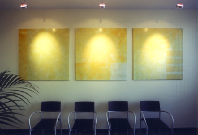 Wartezimmer: Wandtafeln in Spachteltechnik